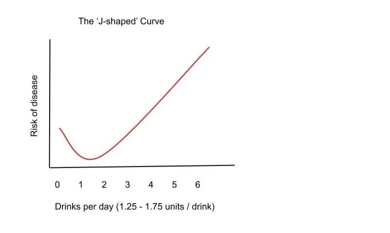 The media obsession with the hazards of moderate drinking are, of course, chiefly driven by the need to get a target audience clicking on articles. Anything that provokes anxiety is a tried and tested way to do this, and there is also a lot of mileage to be had out of recycling contradictory messages. So we are informed that moderate drinking is protective of health and then also that there is ‘no safe level of drinking’. Which is it? Most large-scale studies and meta-analyses over the past few decades show similar findings; that 1-3 drinks a day carries a low risk for cardiovascular events like strokes or heart attacks, as well as metabolic disease like diabetes and neurological conditions like dementia. After 3 drinks a day the risk starts to increase and after 4-5 per day this rises further. Interestingly - and this seems to be the cause of much controversy - complete abstinence tends to show a slightly increased risk of these diseases, leading to the classic ‘J-shaped' pattern.